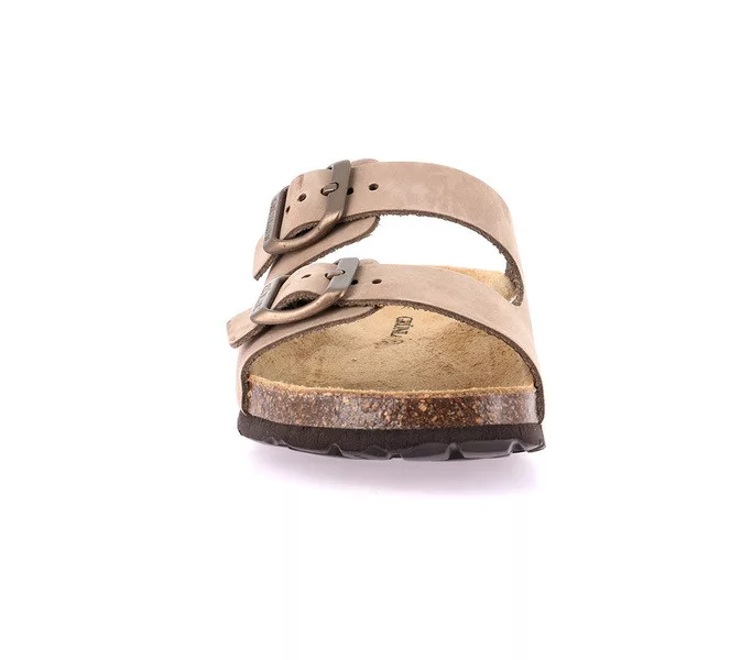 Grunland női papucs. Tulajdonságok: nubukbőr felsőrész, bőr talpbetét, parafa talpágy. Sarokmagasság:
