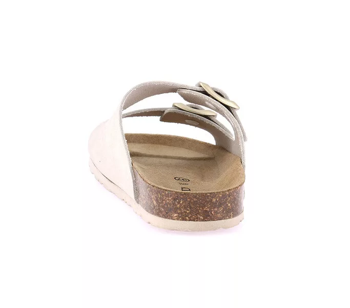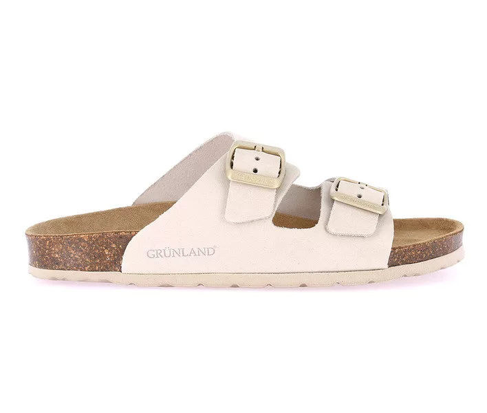 Grunland női papucs. Tulajdonságok: nubukbőr felsőrész, bőr talpbetét, parafa talpágy. Sarokmagasság:
