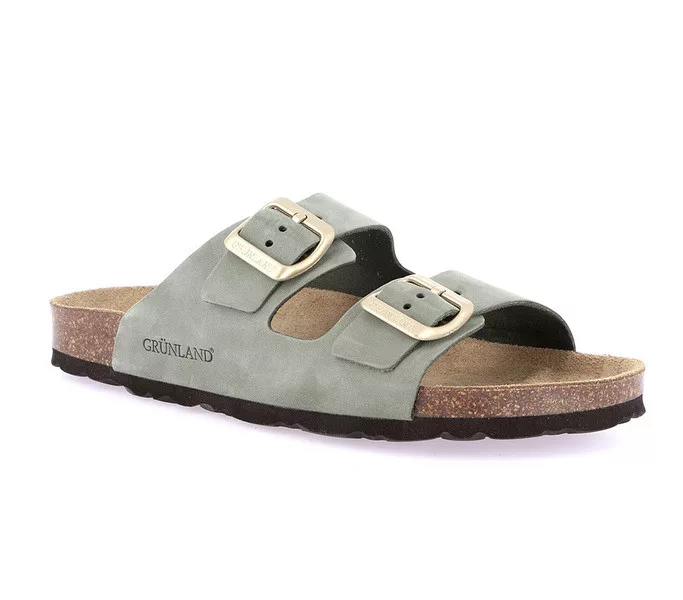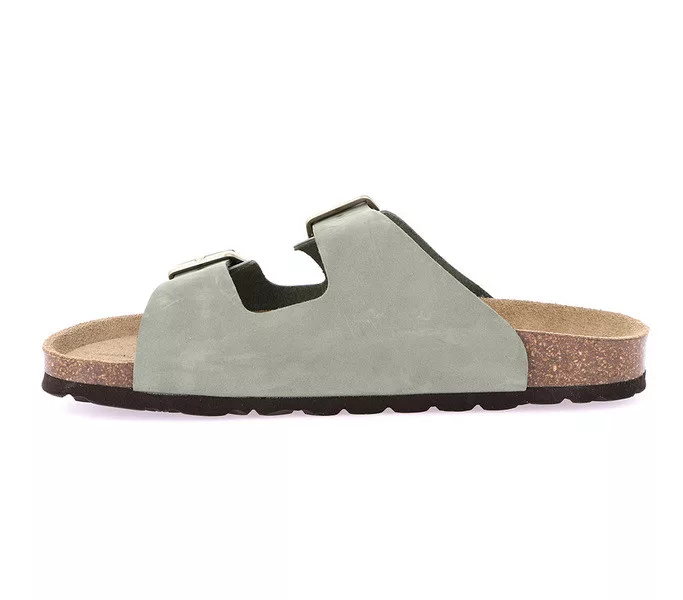 Grunland női papucs. Tulajdonságok: nubukbőr felsőrész, bőr talpbetét, parafa talpágy. Sarokmagasság: