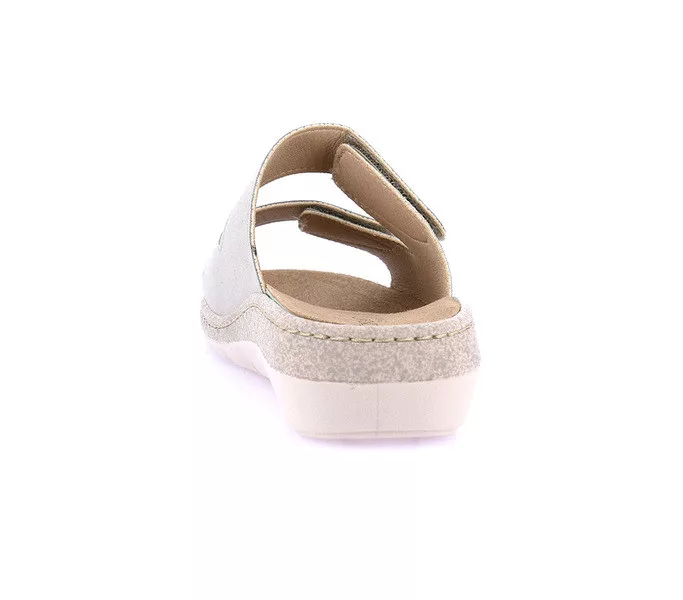 Grunland női papucs. Tulajdonságok: szintetikus felsőrész-bőr talpbetét, parafa talpágy, . Sarokmagasság: