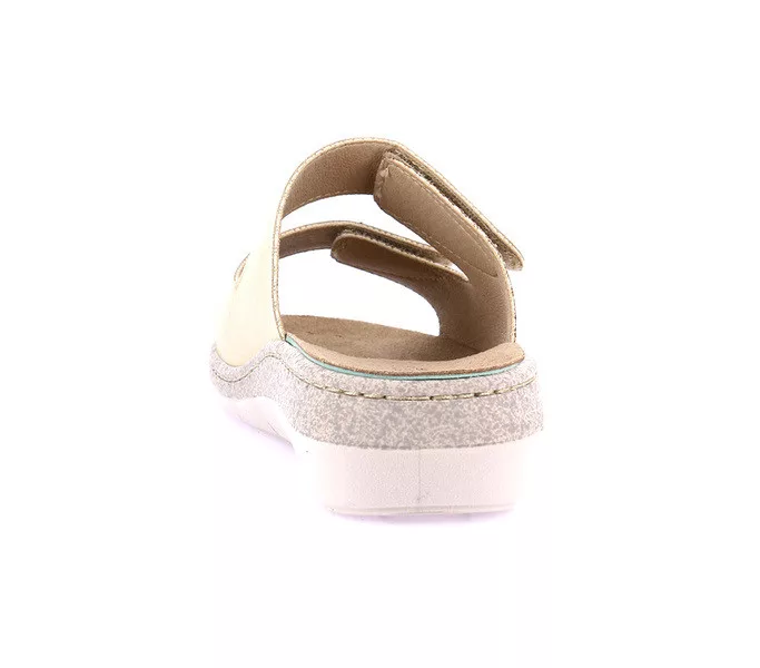 Grunland női papucs. Tulajdonságok: szintetikus felsőrész-bőr talpbetét, parafa talpágy, . Sarokmagasság:
