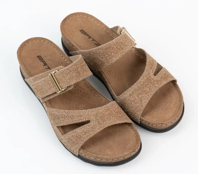 Batz női papucs. Tulajdonságok: Valódi bőr felsőrész, puha bőr belsőrész, szintetikus talp.. Sarokmagasság:
