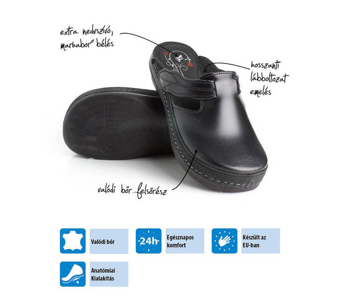 Batz női papucs. Tulajdonságok: Valódi bőr felsőrész, puha bőr belsőrész, szintetikus talp.. Sarokmagasság: 4,5 cm