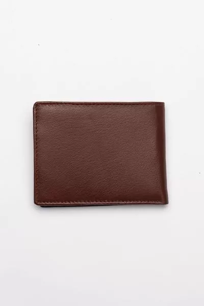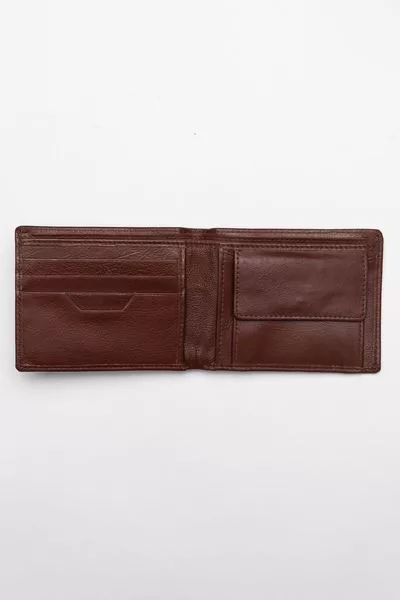 11,5x9x1,5cm - férfi valódi bőr pénztárca - többrekeszes kártyatartóval - patenttal záródó aprópénztartóval - fémcímkével díszítve