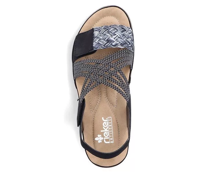 Rieker női szandál. Tulajdonságok: műbőr felső, szintetikus belső, szintetikus talp. Sarokmagasság:
