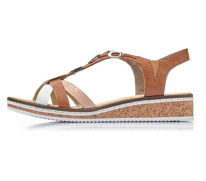 Rieker női szandál. Tulajdonságok: műbőr felső, szintetikus belső, szintetikus talp. Sarokmagasság:
